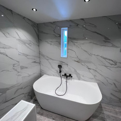 Bij DATECO bouw transformeren we uw badkamer en toilet van puur functionele ruimtes tot oases van comfort en ontspanning. Met aandacht voor zowel esthetiek als gebruiksgemak, creëren onze specialisten badkamer- en toiletoplossingen die naadloos aansluiten bij uw levensstijl. Van moderne armaturen tot luxueuze tegelwerken, wij zorgen dat elke renovatie een verrijking is voor uw woning.